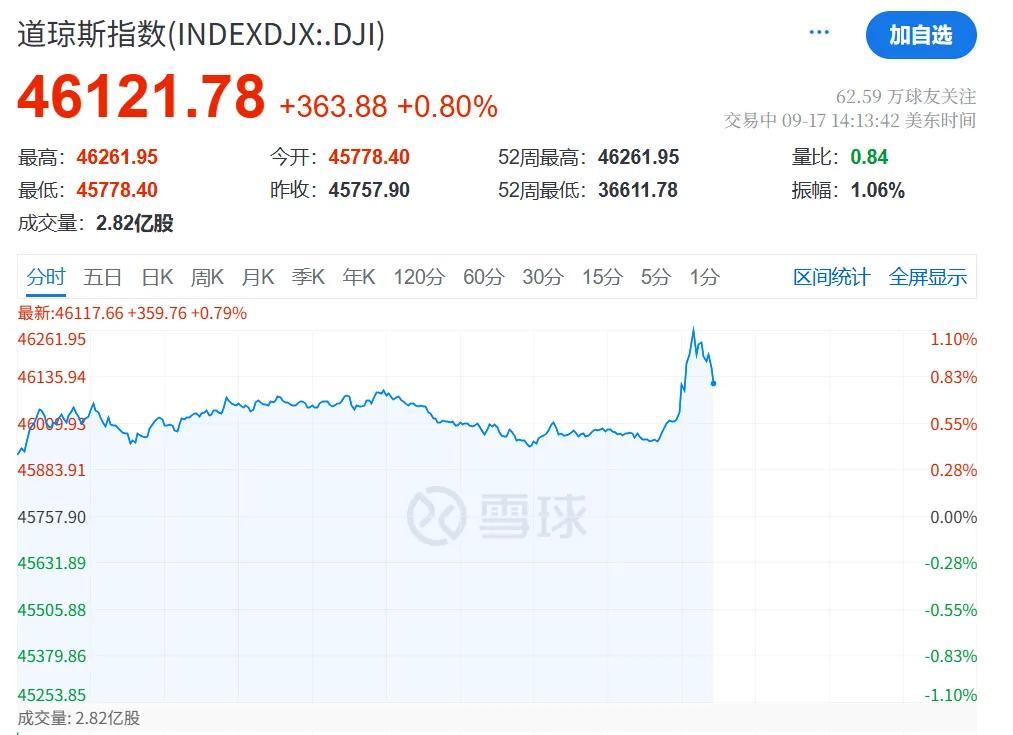 美联储宣布降息之后,市场反应剧烈。美股三大指数一度直线拉升,随后跳水。