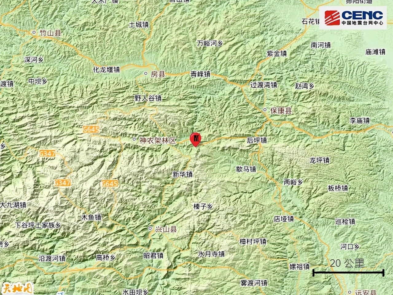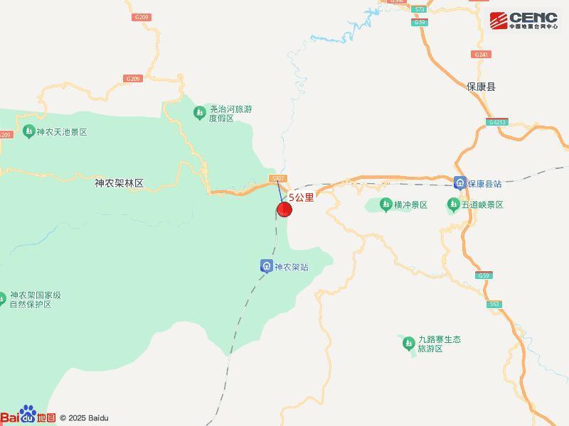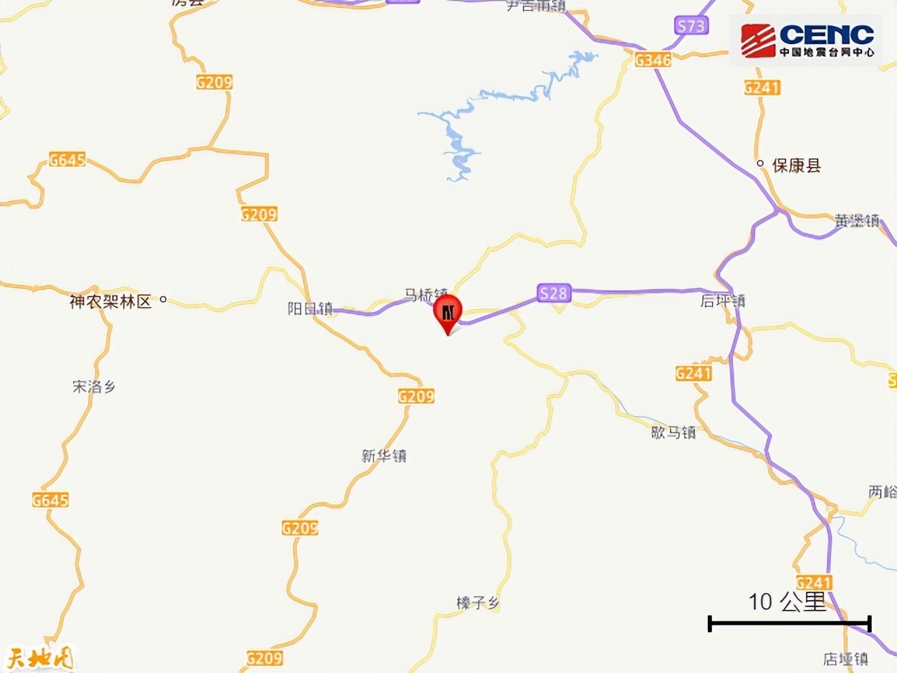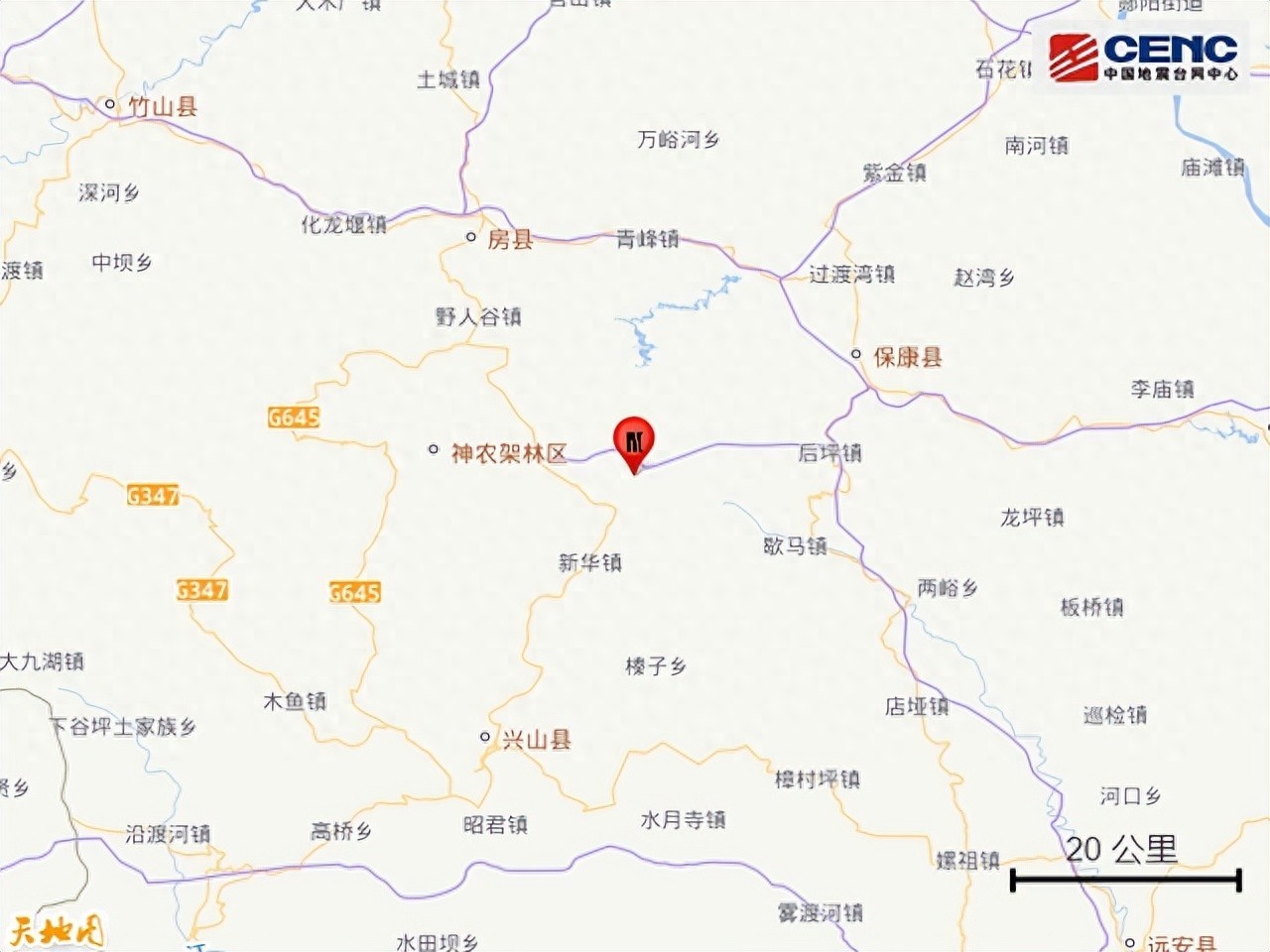 周边县城:震中距保康县35公里、距房县42公里、距兴山县45公里、距南漳县84公里、距竹山县89公里,距神农架林区26公里,距西安市340公里。